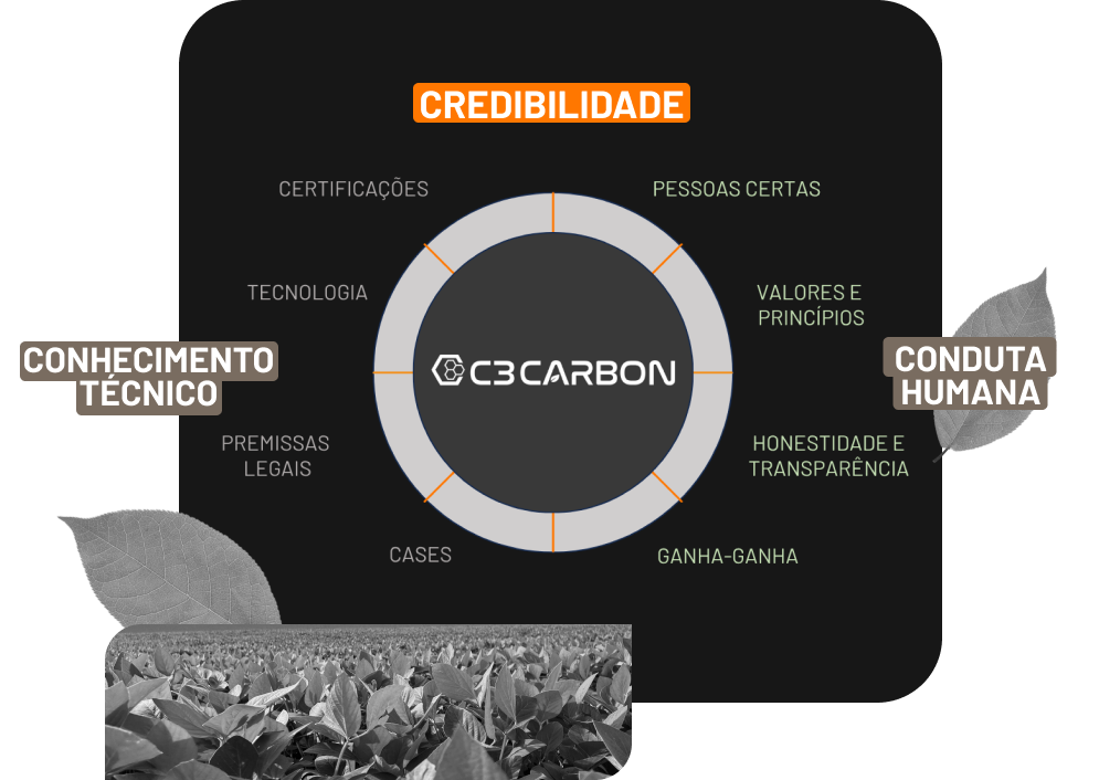 Aqui sabemos que para gerar credibilidade, é necessário antes uma uma conduta humano e conhecimento técnico, por isso usamos esses dois pontos como base na C3 Carbon.